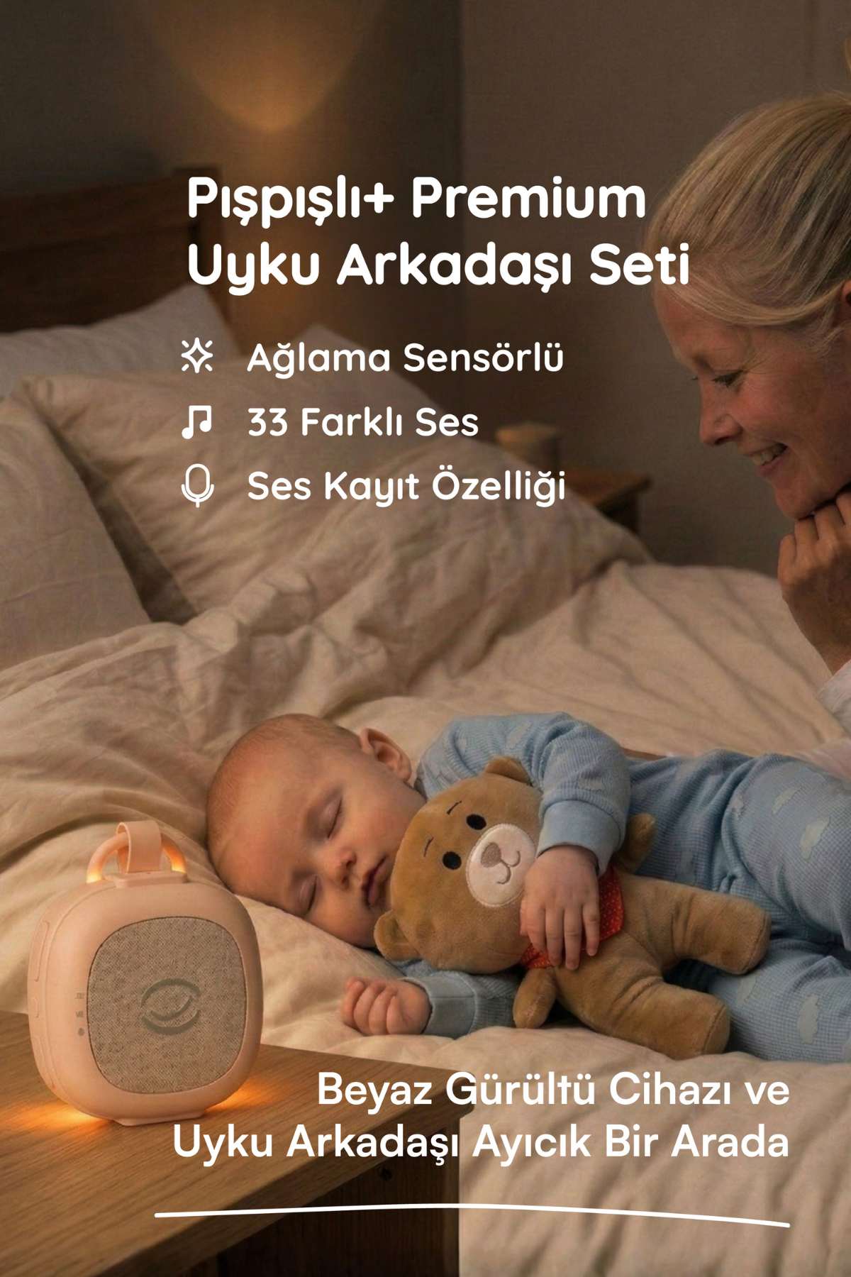 Premium Uyku Arkadaşı Seti | 33 Sesli Pışpışlı Plus Beyaz Gürültü Cihazı ve Ayıcık