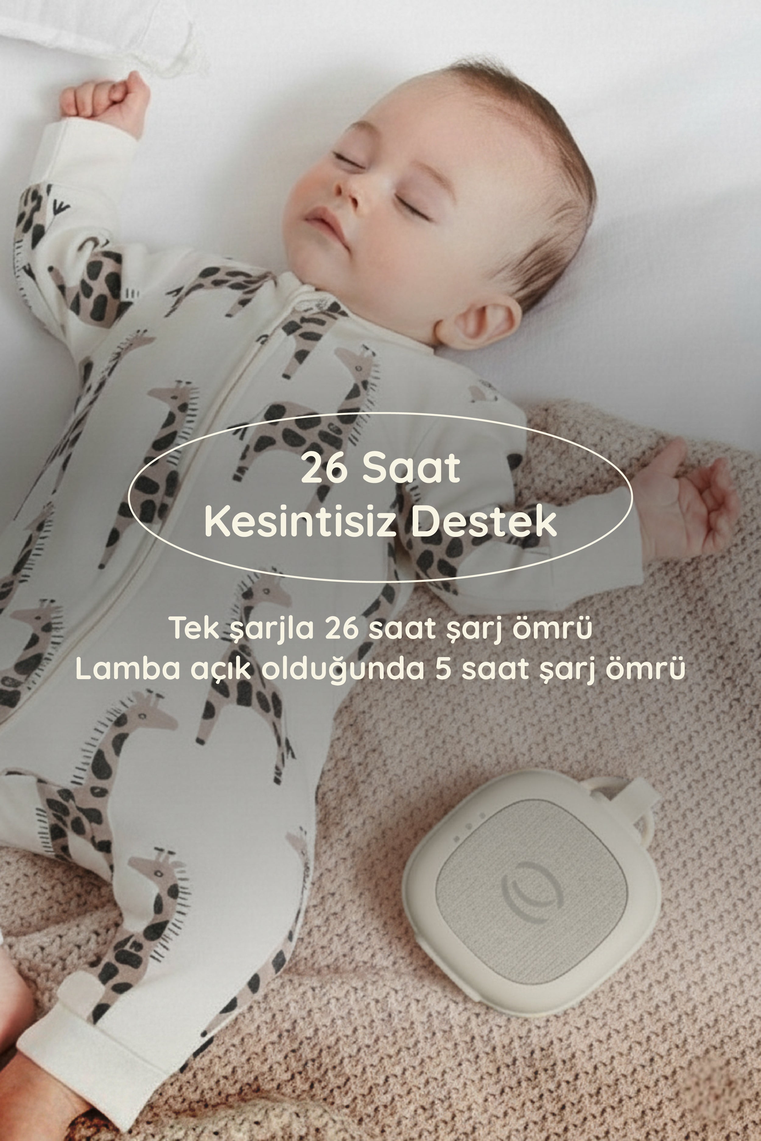 Bebeğiniz ağladığında veya ortamda bebeğinizi uyandıracak yüksek bir ses olduğunda, cihaz otomatik olarak devreye girer ve önceden seçilen sesi çalıştırarak bebeğinizin uykusunun bölünmesini engeller.